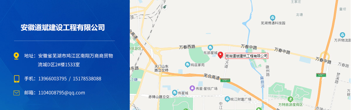 - 安徽道斌建設工程有限公司成立于2018年4月,主要從事工程施工、工程勞務、鋼結構施工、市政公用施工,市政施工總承包貳級、地基基礎工程專業(yè)承包貳級、防水防腐保溫工程專業(yè)承包壹級、鋼結構工程專業(yè)承包貳級、建筑裝修裝飾工程專業(yè)承包貳級、建筑工程施...